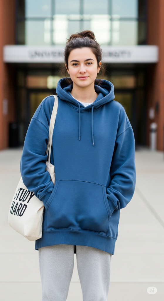 Athleisure doesn’t mean tight clothing—you can go modest with loose joggers and an oversized hoodie. It’s the ultimate comfort outfit for busy school days. Stick with neutral tones for a clean aesthetic, or mix in fun pastel hoodies for a playful twist.