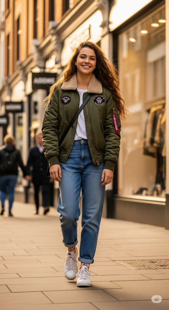 Bomber jackets never go out of style. Layer one over an oversized tee with relaxed-fit jeans for a modest, streetwear-inspired outfit. Perfect for when you want to look confident without being flashy.