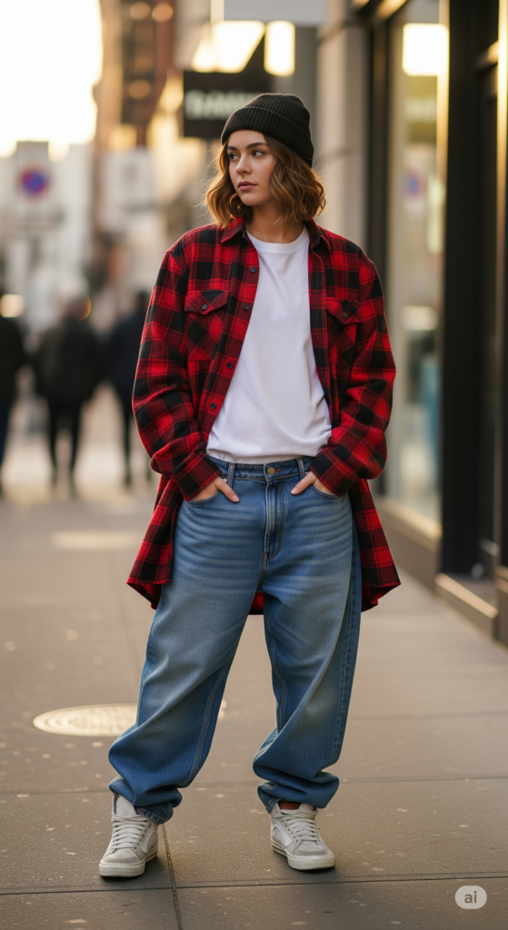 The flannel trend is timeless and perfect for modest dressing. An oversized flannel shirt with loose black pants or baggy jeans gives off relaxed “cool girl” energy. Pair with sneakers or combat boots for extra edge.