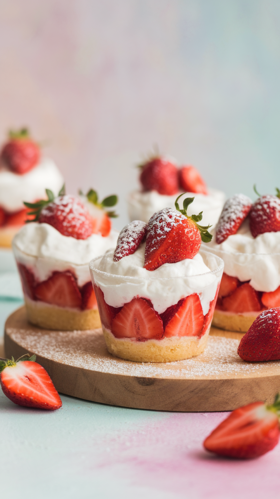 Cake → cream → strawberries. End with strawberries for the cute factor. - Chill or serve immediately.