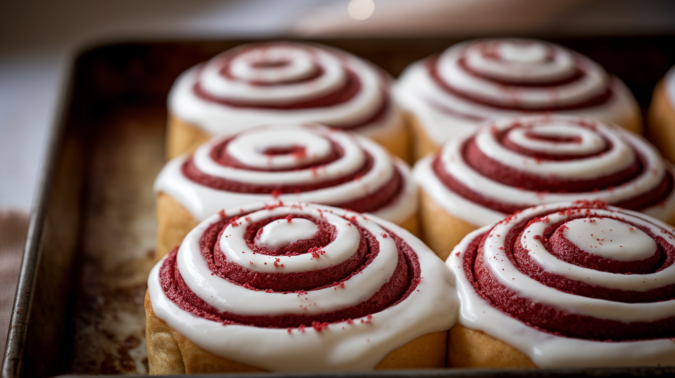 Red Velvet Cinnamon Rolls with Cream Cheese Frosting